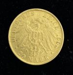 German States Kingdom of Prussia c.1908 William II 20 Mark Coin; 90% Gold (21.6k) German States Kingdom of Prussia c.1908 William II 20 Mark Coin; 90% Gold (21.6k)