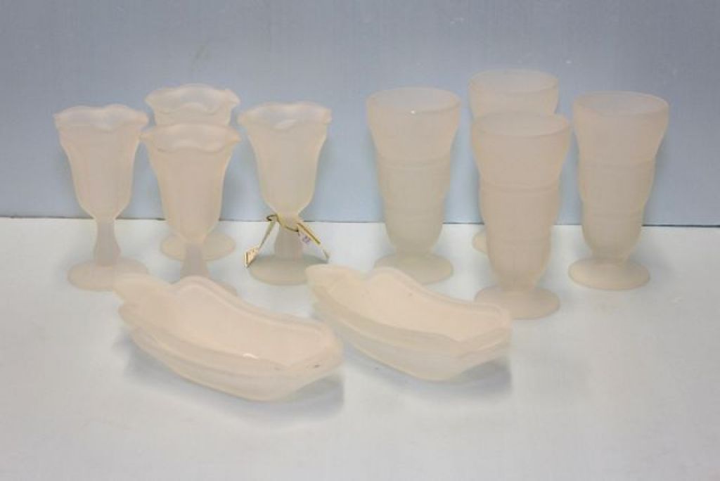 Four banana boats, four sundae glasses & four milkshake glasses Four banana boats, four sundae glasses & four milkshake glasses