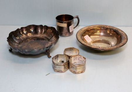 Two silverplate bowls, silverplate napkin rings & silverplate baby mug Two silverplate bowls, silverplate napkin rings & silverplate baby mug