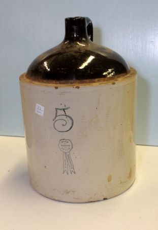 382 #5 Blue Ribbon Buckeye Crock Jug