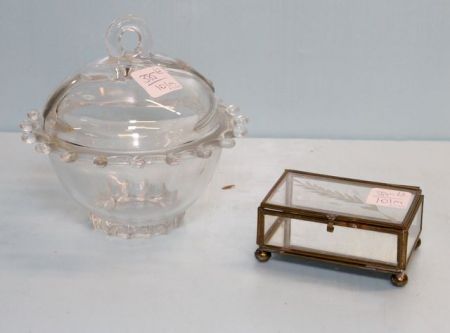 385 Glass Covered Dish & Etched Small Jewelry Box