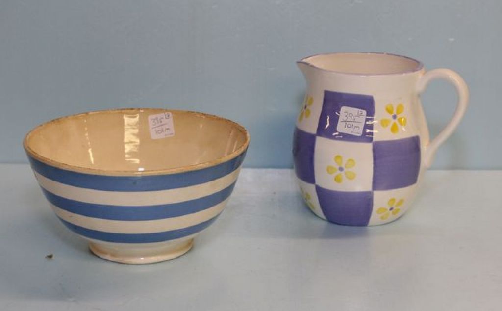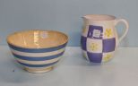 395 Blue and White Crock Bowl & Flowered Pitcher