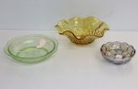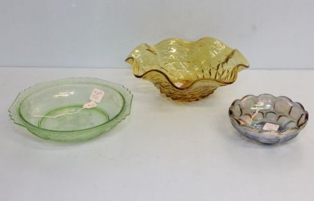 438 Yellow Bowl, Green Depression Bowl & Iridescent Bowl