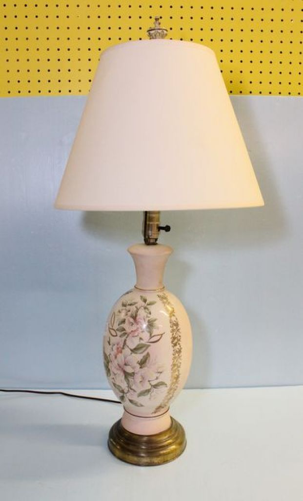 576 Pink and White Lamp with Hand Painted Flowers