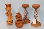 628 Terra Cotta Lady Figurine, Vase & Two Candle Holders