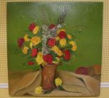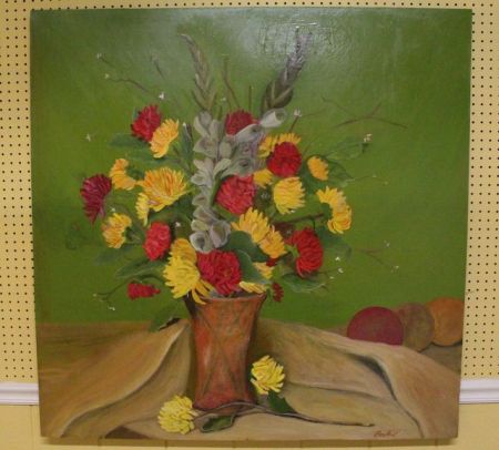 704 Large Unframed Oil on Canvas of Flower Vase