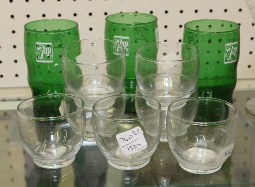 760 Three 7 Up Glasses & Seven Clear Shot Glasses