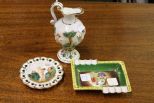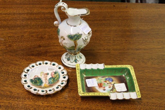 Marked Capodimonte 7" ewer. 4 1/2" Capodimonte dish and a Bavarian ashtray. Marked Capodimonte 7" ewer. 4 1/2" Capodimonte dish and a Bavarian ashtray.