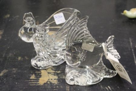 A Heisey rooster, unsigned and a Heisey fish, unsigned. A Heisey rooster, unsigned and a Heisey fish, unsigned.