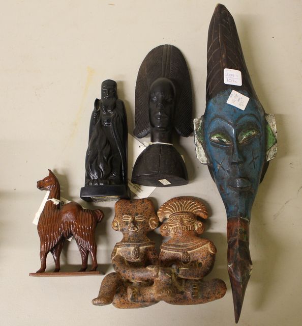 2097 African Woodcarvings, Asian Woodcarving and Ceramic Mayan Figure