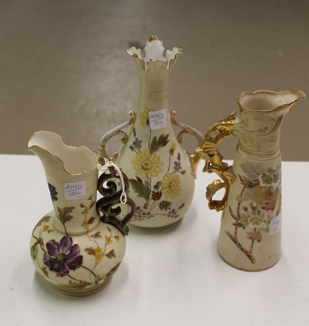 RW Austrian ewer measuring 10" h. Carlsbad ewer, 8" h. RW Germany ewer, 10 1/2" h. RW Austrian ewer measuring 10" h. Carlsbad ewer, 8" h. RW Germany ewer, 10 1/2" h.