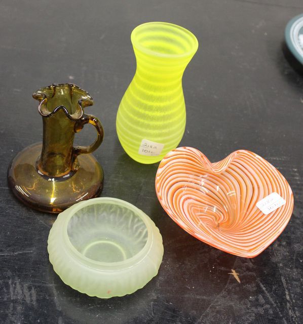 2182 Twelve Ice Cream Glasses with Chips and Four other Colored Glass Pieces