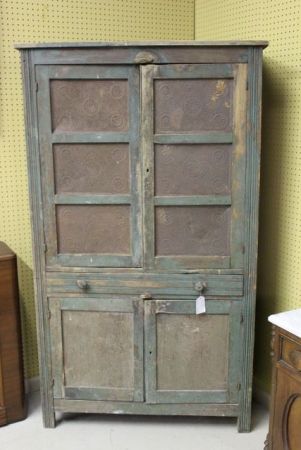 151 Green Primitive Cabinet 6-Tin Pie Safe