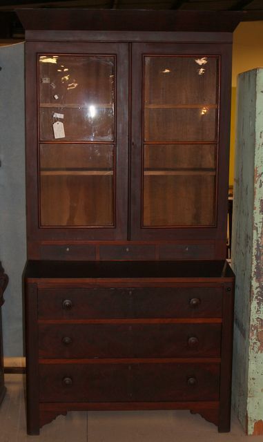 183 Mahogany Empire Step Back Desk with Bookcase Top