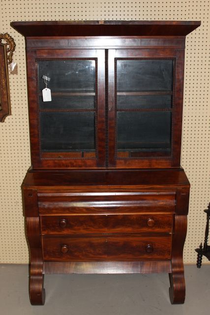 381 Mahogany, Empire Desk with Bookcase Top