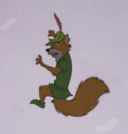 An original Walt Disney Productions hand painted movie/film cel, illustrating Robin Hood from the 1973 Disney animated classic, "Robin Hood." An original Walt Disney Productions hand painted movie/film cel, illustrating Robin Hood from the 1973 Disney animated classic, "Robin Hood."