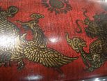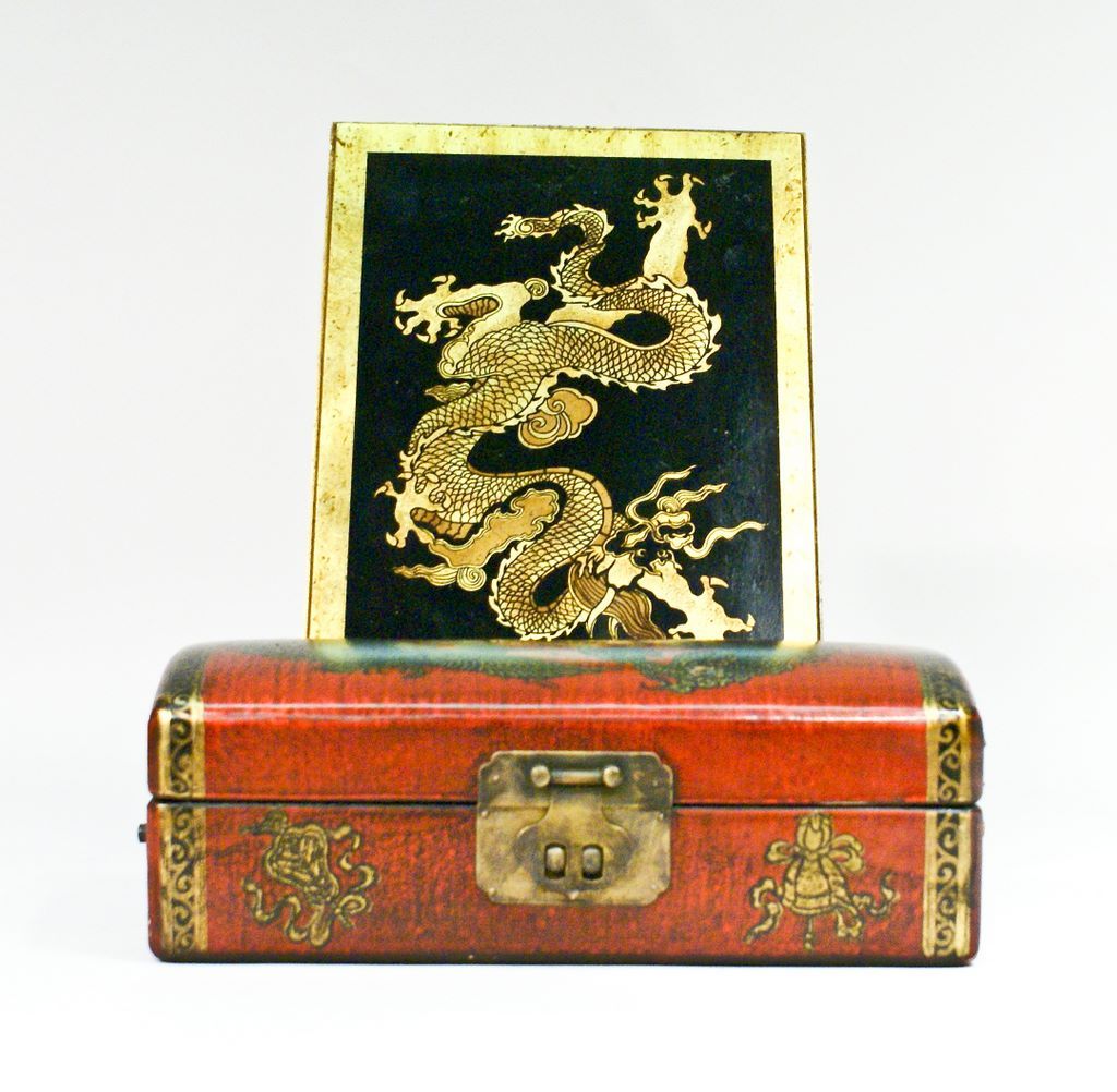 663 Chinese Lacquer Plaque & Leather Box, both w/ Dragons