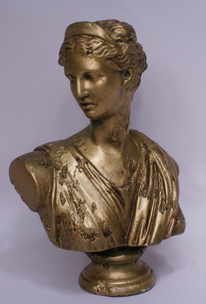 A gilt chalkware classical bust of a woman, 13 1/2"h x 9"w. A gilt chalkware classical bust of a woman, 13 1/2"h x 9"w.