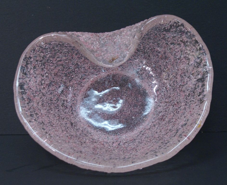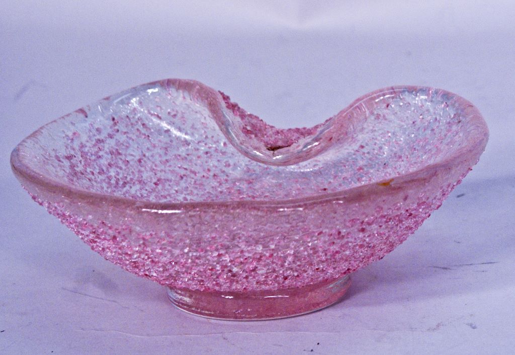 A hand blown Murano art glass bowl, 7"w x 2 3/4"h, of pale pink color with slightly darker overshot sandy exterior. A hand blown Murano art glass bowl, 7"w x 2 3/4"h, of pale pink color with slightly darker overshot sandy exterior.