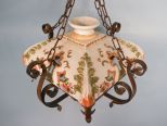 713 Hammered Brass Hanging Light Fixture w/ Hand Painted Faience Shade