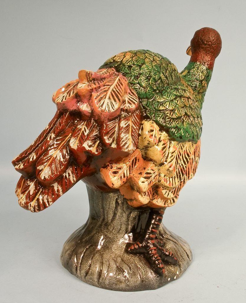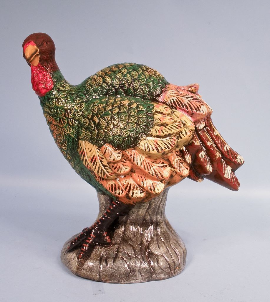 A large 15"h x 16"w Enesco terra cotta hand painted turkey. A large 15"h x 16"w Enesco terra cotta hand painted turkey.