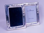 A matched pair of Wallace Silversmiths sterling silver and black velvet picture frames, each 5 1/2" x 8" (fitting 5" x 7" photos, 925 sterling marks. A matched pair of Wallace Silversmiths sterling silver and black velvet picture frames, each 5 1/2" x 8" (fitting 5" x 7" photos, 925 sterling marks.