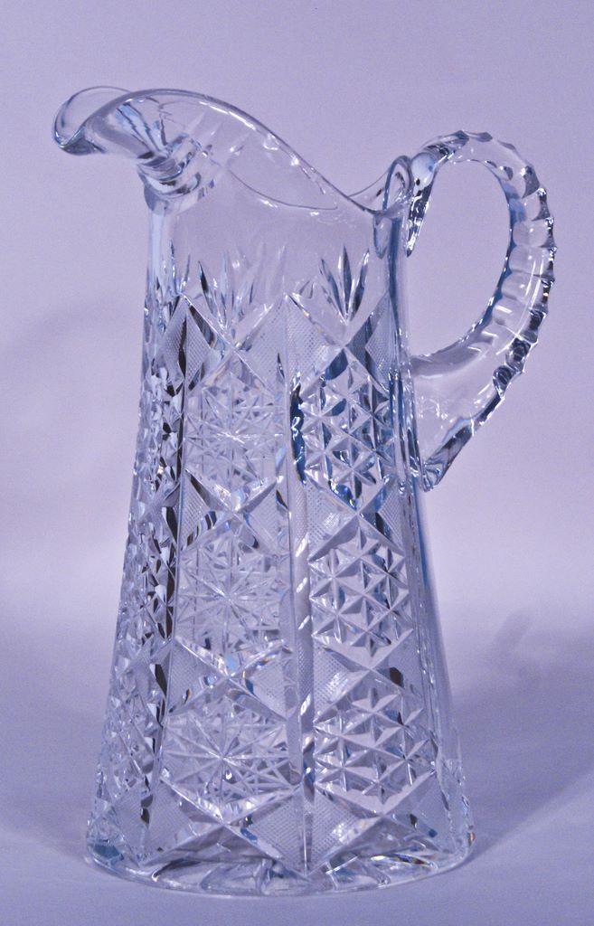 An American Brilliant Cut Glass 10 1/2"h tankard cut in bands of hobstars & grids. An American Brilliant Cut Glass 10 1/2"h tankard cut in bands of hobstars & grids.
