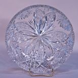 An unsigned Thomas Hawkes American Brilliant Cut Glass bowl, 9"w x 2 1/2"h, in his elaborate "Greecian" pattern patented in 1887. Cut on a Corning/Steuben blank, in very fine condition. An unsigned Thomas Hawkes American Brilliant Cut Glass bowl, 9"w x 2 1/2"h, in his elaborate "Greecian" pattern patented in 1887. Cut on a Corning/Steuben blank, in very fine condition.