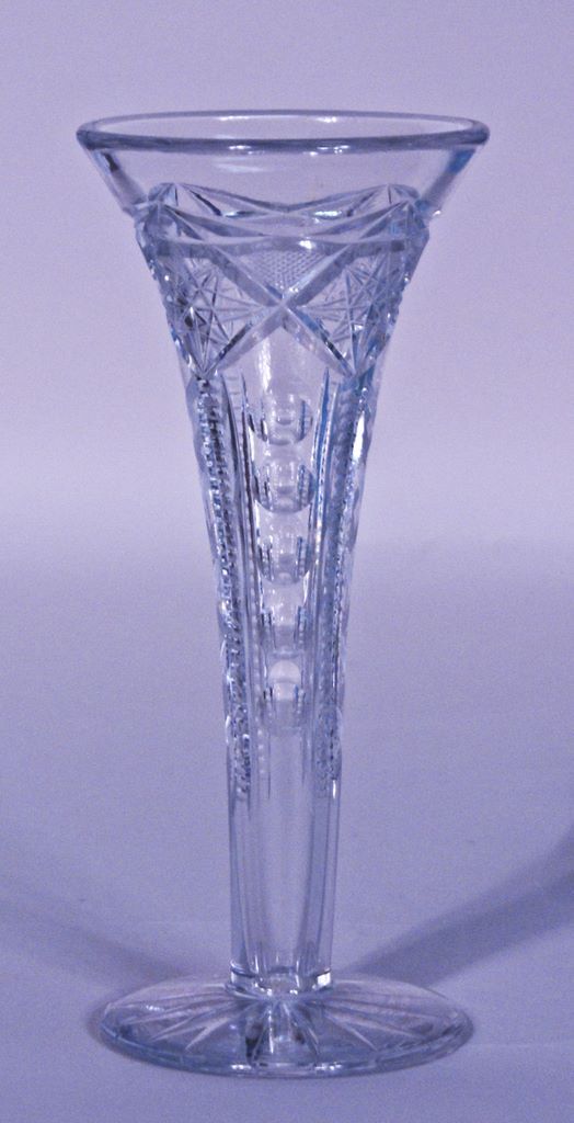 An 8 1/2"h American Brilliant Cut Glass trumpet vase cut with alternating panels of thumbprints and diamonds. An 8 1/2"h American Brilliant Cut Glass trumpet vase cut with alternating panels of thumbprints and diamonds.