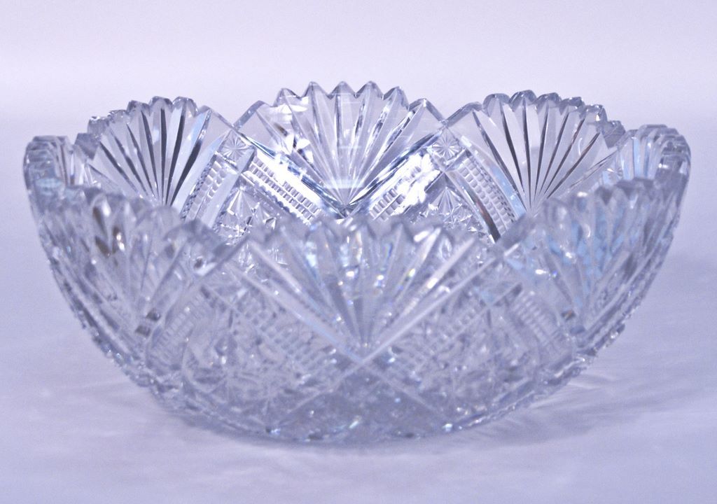 799 American Brilliant Cut Glass Salad Bowl, Banded Diamond, Hobstar & Fan