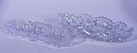 Two American Brilliant Cut Glass celery trays, one rectangular 9 1/2"w x 1 1/2"h, the second oval 10 3/4 x 4 1/2. Two American Brilliant Cut Glass celery trays, one rectangular 9 1/2"w x 1 1/2"h, the second oval 10 3/4 x 4 1/2.