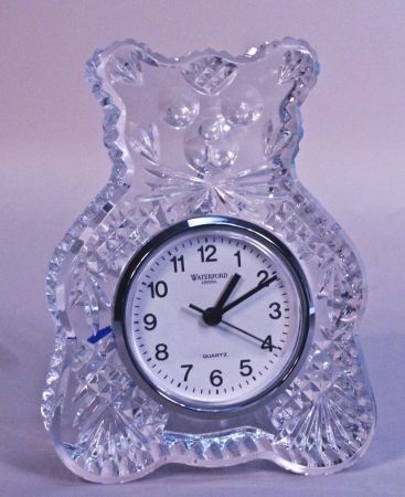 A 6"h signed Waterford Crystal figural bear clock. A 6"h signed Waterford Crystal figural bear clock.