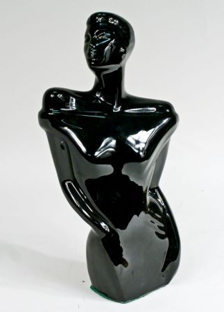 849 Modern Ceramic Statue of a Woman in Gloss Black Glaze