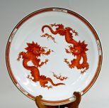 A PGH German Porcelain 11 5/8" charger, hand painted with Chinese dragons. A PGH German Porcelain 11 5/8" charger, hand painted with Chinese dragons.