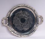 Silverplate Serving Tray, round. 16 3/4" excluding handles Silverplate Serving Tray, round. 16 3/4" excluding handles