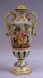 A 17"h hand painted and gilded Capodimonte lamp base, decorated in a pastel shades with classical scenes in bas relief. Marked underglaze "Capodimonte Italy". A 17"h hand painted and gilded Capodimonte lamp base, decorated in a pastel shades with classical scenes in bas relief. Marked underglaze "Capodimonte Italy".