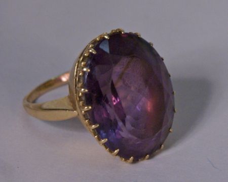 A ladies Amethyst Ring with 23 x 17 oval amethyst stone set in 14 karat yellow gold mounting. A ladies Amethyst Ring with 23 x 17 oval amethyst stone set in 14 karat yellow gold mounting.