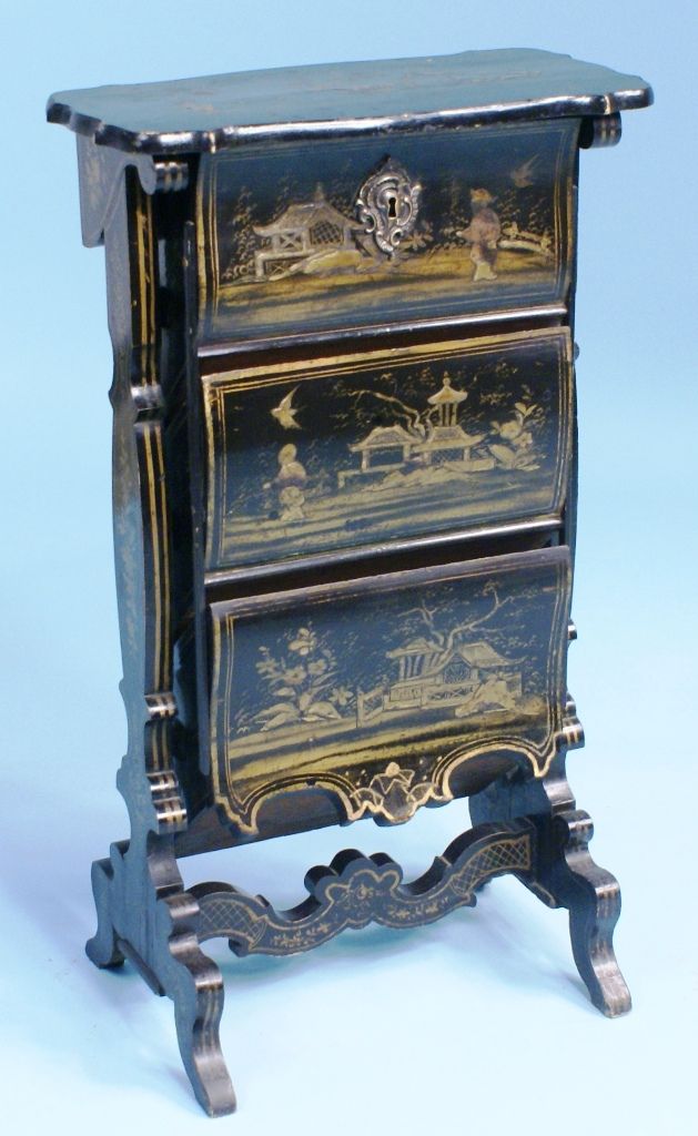 Japanese Style Gilde and Lacquerware Sewing Stand, circa 1900. 2' 7" Tall x 1' 5 1/2" Width Japanese Style Gilde and Lacquerware Sewing Stand, circa 1900. 2' 7" Tall x 1' 5 1/2" Width