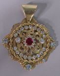 387B Antique Gold Ladies Ruby and Diamond Pendant