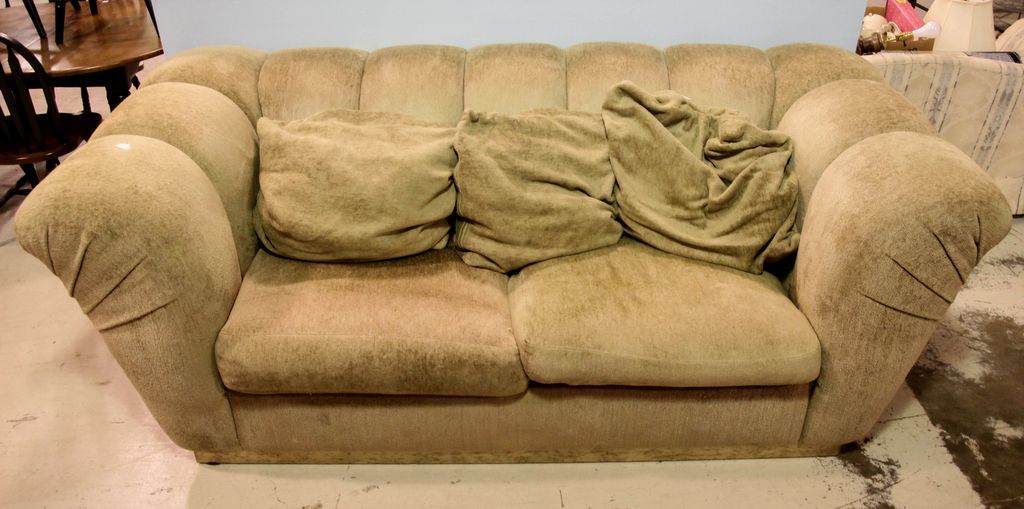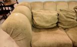 Contemporary two cushion upholstered sofa; 93" w., 44 1/2" d., 36" h. Contemporary two cushion upholstered sofa; 93" w., 44 1/2" d., 36" h.