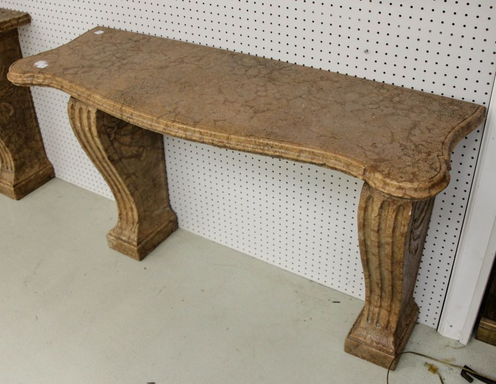 Classical style marble console; 51" w., 17" d., 29" h. Classical style marble console; 51" w., 17" d., 29" h.