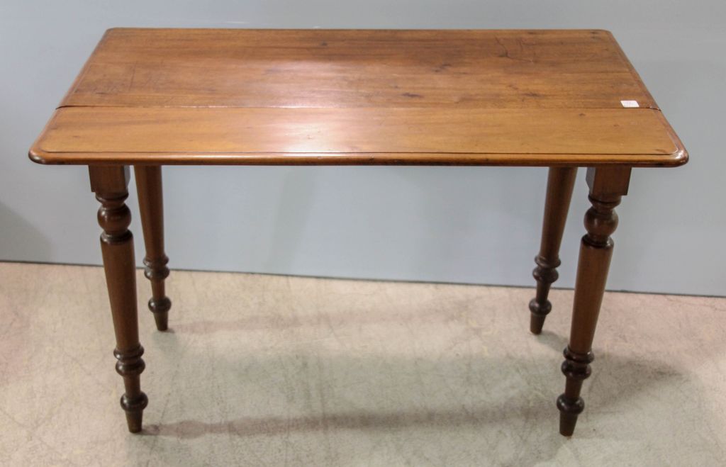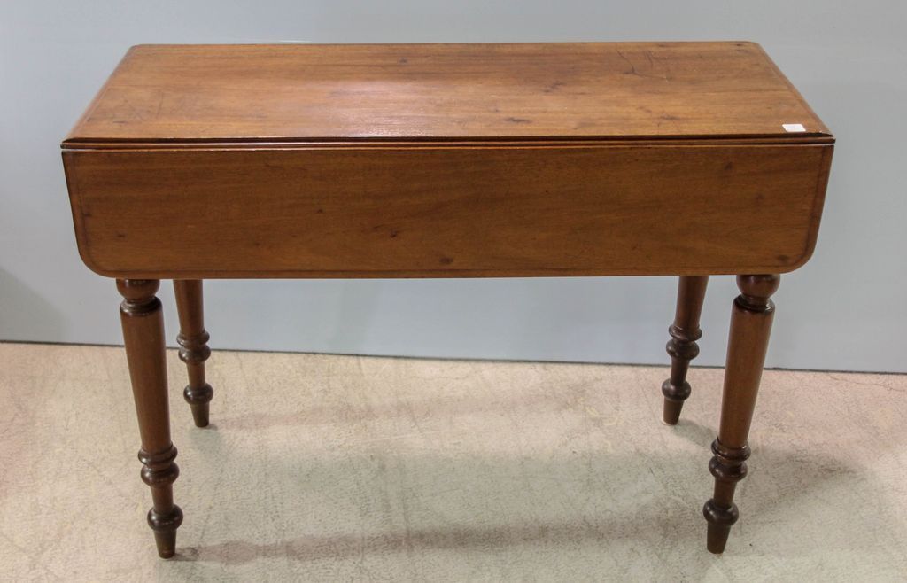 19th century mahogany drop leaf table, with two 9" drop leaves.; 39 1/2" w., 16" d., 29 1/2" h. 19th century mahogany drop leaf table, with two 9" drop leaves.; 39 1/2" w., 16" d., 29 1/2" h.