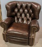 Large leather upholstered club chair with tufted back.; 41" w., 29" d., 40" h. Large leather upholstered club chair with tufted back.; 41" w., 29" d., 40" h.