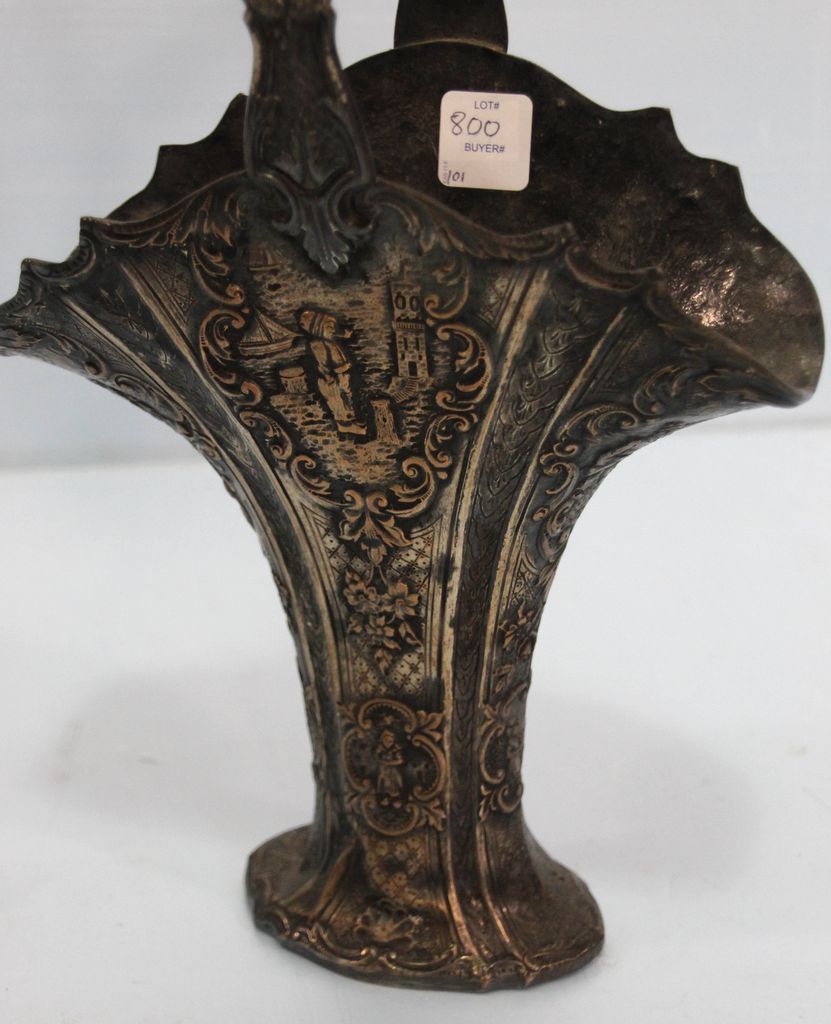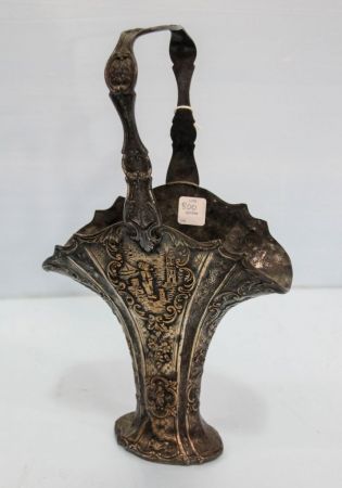 Victorian silverplate basket; 9" w., 16" h. Victorian silverplate basket; 9" w., 16" h.