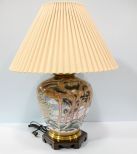 Large hand painted lamp in oriental motif.; 29" h. Large hand painted lamp in oriental motif.; 29" h.