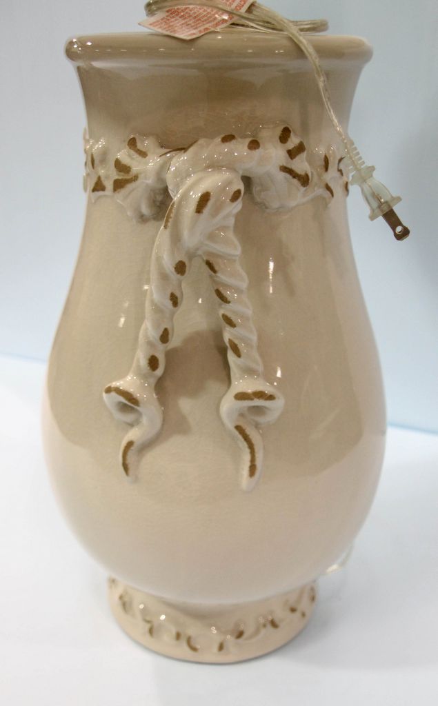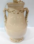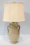 Large urn shaped crackled finish porcelain lamp.; 33" h. Large urn shaped crackled finish porcelain lamp.; 33" h.