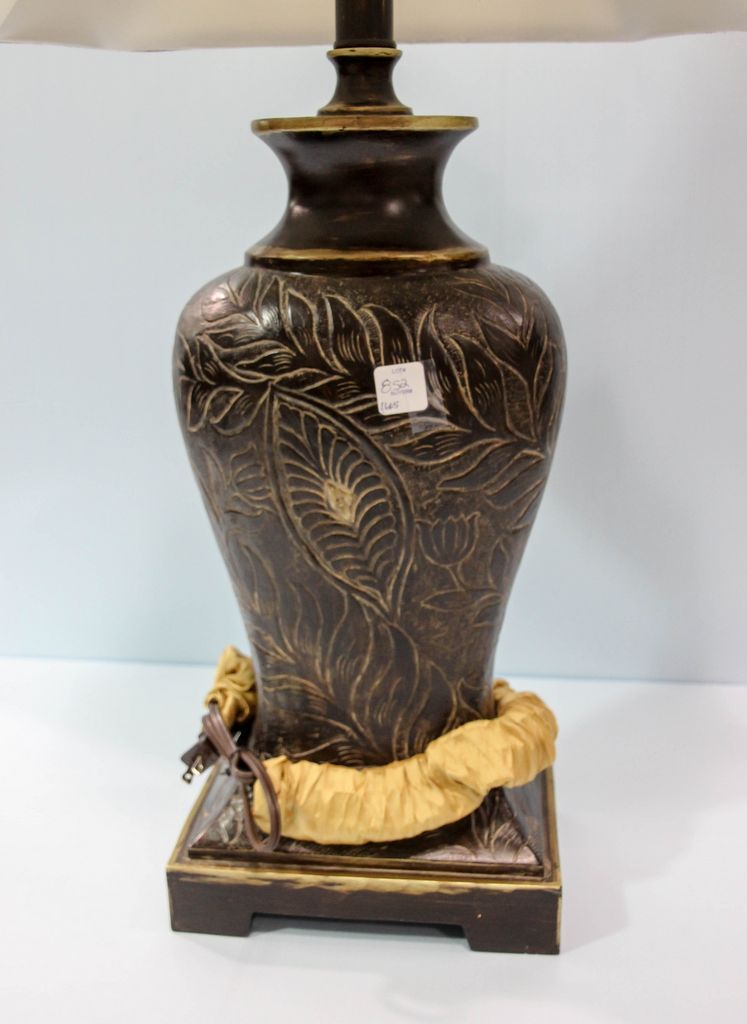 Resin painted and decorated table lamp.; 35" h. Resin painted and decorated table lamp.; 35" h.