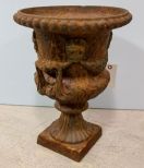Cast iron urn with swag decorations.; 12 1/2" dia., 17 1/2" h. Cast iron urn with swag decorations.; 12 1/2" dia., 17 1/2" h.