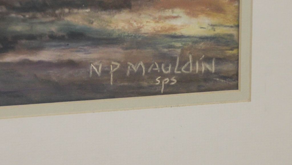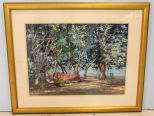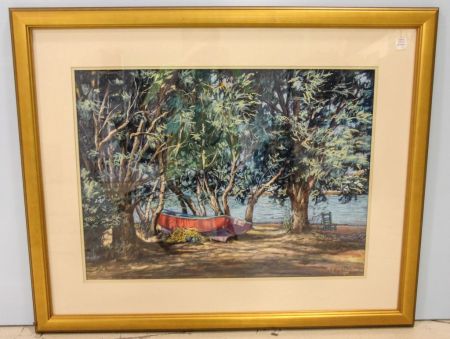 Pastel on paper of lake scene by Nancy Mauldin (McComb, Mississippi native lives in Mississippi and France); Image 27"x 20"; Frame 38"x 30" Pastel on paper of lake scene by Nancy Mauldin (McComb, Mississippi native lives in Mississippi and France); Image 27"x 20"; Frame 38"x 30"
