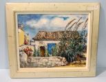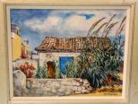 Oil on canvas of French coastal cottage by Nancy Mauldin (Mississippi/France); Canvas- 16 1/2"x 20"; Frame- 21 1/2"x 25 1/2" Oil on canvas of French coastal cottage by Nancy Mauldin (Mississippi/France); Canvas- 16 1/2"x 20"; Frame- 21 1/2"x 25 1/2"